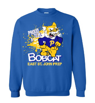 50/50 cotton/polyester youth heavy blend crewneck sweatshirt with Double-needle stitching at waistband and cuffs, pill-resistant air jet yarn, set-in sleeves, 1×1 rib knit collar, cuffs and waistband with spandex. Available in black and royal blue colors and in sizes S-XXL.